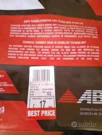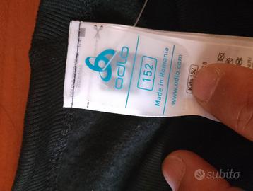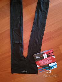 N. 2 calzamaglie termiche junior taglia 152, senza piede. N. 1 marca ABC, n. 1 marca Odlo. Kit composto da n. 2 capi nuovi mai usati ancora con cartellino attaccato, visibili prezzi di acquisto. Acquistati per errore di taglia. Vendesi in coppia. Ideali per calcio, palestra, bici, corsa