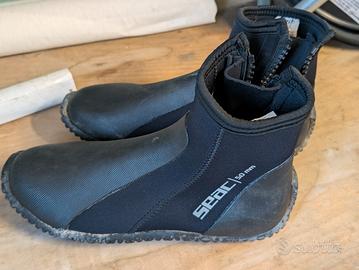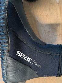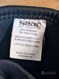 Mantere i piedi caldi e le pinne ben stabili è fondamentale durante un’immersione subacquea. I calzari in neoprene Seac Regular ti permettono di calzare in tutta comodità le tue pinne da subacquea a tallone aperto preferite grazie alle protezioni in poliuretano sul collo del piede e ai rinforzi sul tallone. Sono realizzati in neoprene da 5 mm di alta qualità che protegge i piedi dal freddo donando grande comfort. La suola dei calzari Seac Regular è di tipo semi rigido e anti sdrucciolo. Massimo comfort La protezione in poliuretano su collo del piede e il rinforzo sul tallone tengono la scarpetta della pinna ben ferma ed evitano ogni fastidio. Calzata rapida I calzari da subacquea Seac Regular si indossano velocemente grazie alla pratica cerniera laterale foderata all’interno. Anti scivolo La suola dei calzari da sub Seac Regular è di tipo semi rigido e anti scivolo per il massimo comfort, non solo durante le immersioni. Protezione termica l neoprene da 5 mm protegge il piede dalle basse temperature e contribuisce a tenere lontani i fastidiosi crampi da freddo.