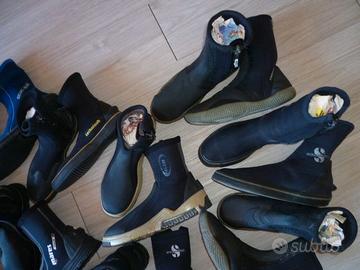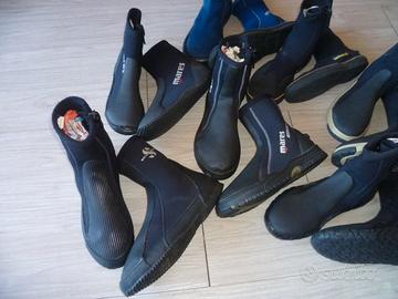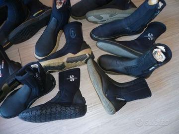 Vendo per esubero i seguenti calzari per immersioni sub: Calzari Mares Flexa DS 5 mm taglia 7 (39-40) con suola rigida e cerniera in perfetto stato 25 euro Calzari Mares Classic NG 5 mm taglia 5 (36-37) con suola semirigida e cerniera come nuovi 20 euro Calzari Scubapro Delta 5 mm taglia 6 (37-38) con suola semirigida e zip come nuovi 20 euro Calzari Scubapro 5 mm n. 39 con suola semirigida e cerniera sbucciatura posteriore sul calzare sinistro 10 euro Calzari Scubapro 3 mm taglia M/8 (40-41) con suola rigida e zip ottimo stato 15 euro Calzari Technisub 3 mm taglia XS (36-37) con suola rigida e zip buono stato 15 euro Calzari Rofos Color 5 mm taglia S (37-39) con suola rigida e zip, interni in caldo Thermo Plush, ottimo stato 25 euro Calzari Seac Sub 3 mm taglia XL (42-44) con suola semirigida, discreto stato 10 euro Calzari Tribord suola rigida e zip taglia 40-41 ottimo stato 20 euro Calzari Tribord 5 mm con suola rigida e zip, taglia 34-35, usati solo 2 volte, come nuovi 20 euro Tel. 3498108197 Per il pagamento bonifico bancario in caso di spedizione oppure ritiro diretto Se l’inserzione è visibile vuol dire che è ancora disponibile SOLO INTERESSATI Grazie