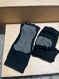 Secondo paio: calzini donna antiscivolo, brand non indicato, per yoga/ pilates , a dita separate, con punte aperte. In cotone, colore nero, taglia unica