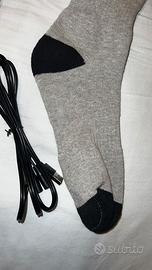 Vendo calzini riscaldabili mai utilizzati, completi di sistema di riscaldamento con pulsante a doppia regolazione per gestire la temperatura su due livelli. Ogni calza può essere regolata individualmente, così da adattare il calore in modo preciso. Dotati di cavo lungo pensato per collegarsi comodamente a un powerbank riposto nella tasca del giubbotto, senza intralcio durante l’uso.