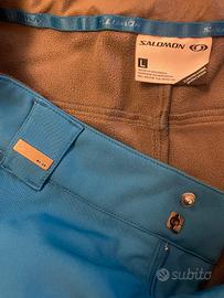 Calzoni da sci Salomon in Softshell Clima Pro Storm 20000/20000 taglia XL, elasticizzati, molto comodi, vestono largo. Mai usati perché grandi per me, sono come nuovi (non ho più confezione originale), antivento e antipioggia, vita regolabile tramite strap interni, tasche laterali