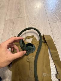 Camelback colore Dark Earth marca KMS, con sacca d'acqua e comodo beccuccio di idratazione, vendo per passaggio ad altro modello, portata 2 volte sul campo, perfetta per essere imbracata senza bisogno di sistema molle, si mette direttamente a spalla come un normale zainetto. Prezzo già basso e non trattabile
