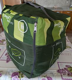 Campeggio: Materasso Matrimoniale Gonfiabile con Piumino Decathlon Quechua. Il Piumino si aggancia al materasso con elastici e bottoni. La sacca che lo contiene ha un piccolo buco e dei segni di usura, ma il contenuto e tenuto bene. Peso: quasi 7kg Ritiro a mano, disponibile per visionare. Prezzo leggermente trattabile.