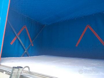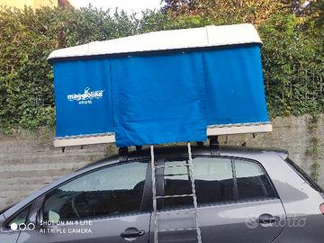 Tenda Over Camp HobbY Sstruttura rigida compatta. Materiali e componenti guscio + tetto in fibra di vetro per una eterna durata versatile e funzionale . Ottima per la sua forma aerodinamica adatta anche per le vetture + piccole e media cilindrata. Un usato perfetto.