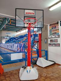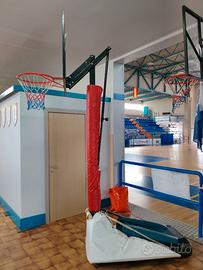 Due canestri con ruote , regolabili in altezza da 2,30 a 3,05, compresi di sostegni e gomma piuma anti urto, ottime condizioni