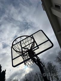 Questo canestro da basket offre una qualità di gioco eccellente grazie alla rotella di regolazione. Con 7 altezze di gioco, da 2,40m a 3,05m. Ideato per schiacciare, con cerchio flex.