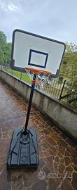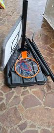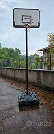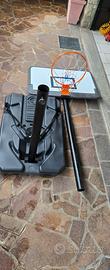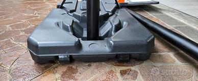 Canestro con zavorra e ruote con altezza regolabile da metri 2,17Mt a 3,20. Completamente smontabile Prezzo non trattabile, ritiro a mano zona Mapello.