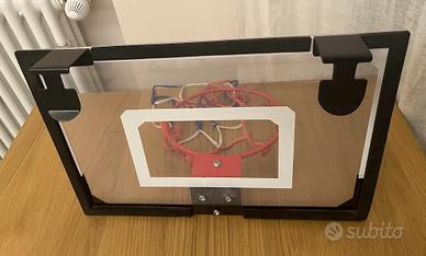 Canestro da camera. Include un cerchio D= 22 cm da basket in acciaio con molla , un pannello in acrilico 45x30 cm, ganci (spessore 4,5 cm) per il fissaggio sulla porta della cameretta.