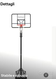 Canestro basket Tarmak B700 PRO regolabile Vendo canestro da basket modello B700 PRO, perfetto per giocare in giardino o all’aperto. Il canestro è stato usato sempre con prudenza, mai rotto e si presenta in ottime condizioni. Regolabile facilmente senza attrezzi, con diverse altezze disponibili (da 2,40 m a 3,05 m), ideale sia per ragazzi che per adulti. Struttura solida e stabile, adatto anche per schiacciate grazie al cerchio flex. Modello: B700 PRO Altezza regolabile: da 2,40 m a 3,05 m Utilizzo: esterno