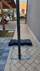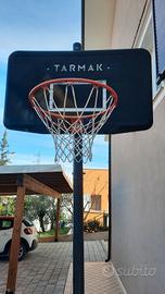 MARCA TARMAK DECATHLON Altezza regolabile da Mt. 2,20 a 3,05 Base zavorrata con 46 litri. cm. 107x45x15 Tabellone : cm. 106×64x3,2 Diametro canestro interno cm.45