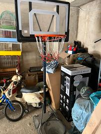 Vendo per inutilizzo canestro da basket da esterno regolabile in altezza da 160 cm a 246 cm (altezza canestro) , ideale per giardino, casa estiva, garage , cortile. Mai utilizzato, prodotto ancora con pellicola di protezione su tabellone.
