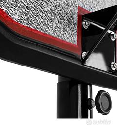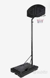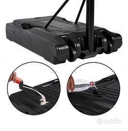 Canestro da basket altezza regolabile e ruote per spostarlo facilmente. dimensioni supporto: LxPxA = 60x90x18,5 cm * altezza regolabile 205 - max. 310 cm * diametro anello 43 cm * viti di fissaggio zincate Dati tecnici: * altezza anello regolabile: 205 - max. 310 cm * diametro interno dell'anello: 43 cm * dimensioni tabellone: 92 × 61 × 3 cm * dimensioni base: 90 × 60 × 15 cm * diametro del tubo d'acciaio: parte superiore 50 mm * diametro del tubo d'acciaio: parte inferiore 55 mm * puntoni di sostegno del piede: 20 mm * peso senza riempimento: 13,2 kg * altezza totale compreso il tabellone: 355 cm * contenuto del supporto: con sabbia 70 kg, con acqua 60 | * materiale: tubo in acciaio + tabellone in PE + base in PE + bordo in acciaio * materiale della rete: nylon resistente alle intemperie * portatile: con rotelle incorporate; può essere facilmente spostato e posizionato all'inclinazione desiderata * colore: struttura nera, tabellone grigio-rosso-blu. L’oggetto si trova a Lago Patria. È riposto nella sua scatola originale ed è stato usato per pochi giorni l’estate scorsa.