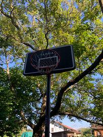 canestro tarmak a piantana regolabile ( cinque altezze di gioco) con zavorra. Ferro del canestro deformato ma ancora utilizzabile e facilmente sostituibile