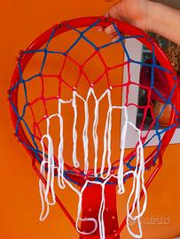 Canestro da basket regolamentare (diametro 48 cm) in metallo. Rete nuova, mai usata, come da foto.