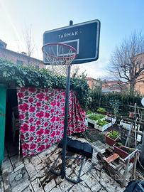 Vendo questo canestro con struttura, marca Tarmak comprato al Decathlon, perfetto sia per un giardino in erba che per una superficie in cemento.