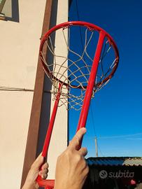 Canestro da Basket Pallacanestro da pavimento ma senza base, diametro 49cm altezza 77cm, ovviamente và aggiunta una base che io non possiedo, vendo solo quello che si vede in foto. Prezzo 10€ ritiro a Gruaro o 17 e 18 Novembre Pordenone/Aviano