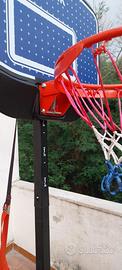 Canestro Tarmark 900 ha il cerchio con sgancio che facilita le schiacciate. Altezza regolabile, da 1 m 60 a 2m20.