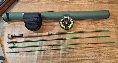 Set completo per la pesca a mosca, include canna e mulinello.