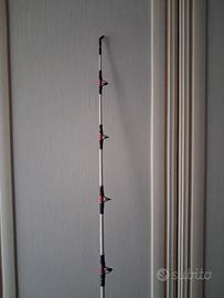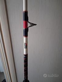 Canna Abu Garcia Commodore CC64MH in carbonio, lunga 193 cm, puo lanciare fino a 170g (non ne sono sicuro, tra le foto ci sono le informazioni).