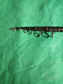 Canna da bolentino mt 3 in carbonio alto modulo, vettino colorato in vetroresina con anelli scorrevoli. Anelli fissi sulla canna in sic silicato di carburo doppio ponte.