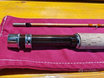 Vendo causa scarso utilizzo canna bamboo 6'6" #3/4, realizzata da Nico's Rods 06/2023 con ottime finiture e materiali di qualità. Azione moderate-fast, piega progressiva, ottima spinta nel lancio. Solo un piccolissimo segno dove si blocca il mulinello con l'anello appena percepibile, canna utilizzata in pochissime occasioni pari al nuovo. Compreso tubo esagonale in legno. Disponibile per prova in zona.