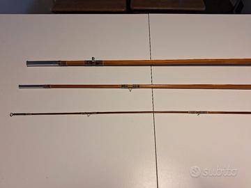 canna da mosca in bambù marca Olympic, in 3 pezzi. lunghezza 260 cm. stimo coda #5.