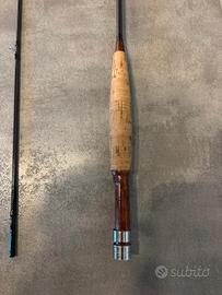 Canna da pesca a mosca artigianale fatta a mano, con inserti in radica. Lunghezza circa MT .1.80 (6'3) per code leggere #3 o al massimo #4 con azione rigida. Perfetta per piccoli torrenti.