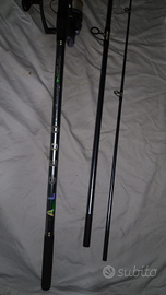 Vendo canna da surfcasting in carbonio alto modulo Alcedo Green line mediterranea III ripartita ad azione di punta lunghezza 4.50 potenza di lancio 200gr abbinata al mulinello alcedo First Mariner 8000s a frizione anteriore imbobinato con 0.40 Falcon