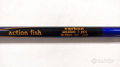 - Canna da surfcasting telescopica Action Fish Mormora 400. - Lunghezza: 4,00m. - Casting weight: 80-120gr. - Fodero portacanna in tessuto. - Tracce di ruggine in corrispondenza della freccia (vedi foto), ma che non compromettono il normale utilizzo della canna.