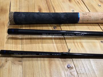 Canna da pesca all’inglese tre pezzi Maver adatta alla pesca al cavedano con fili sottili casting max 14/16 gr. Tutte le parti sono integre ed originali.