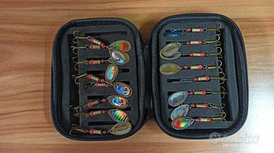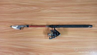 vendo canna da pesca 180 cm con mulinello e 16 cucchiaini più custodia.