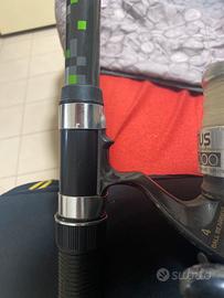 Cana pesca di 3,50 m compreso con mulinello da 6000 con filo anelli messi in buone condizioni, prezzo trattabile