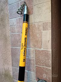 Vendo canna da pesca Daiwa carpa 45 special con mulinello Daiwa Vintage di colore Giallo e mulinello nero.