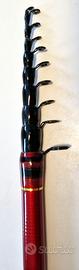 Vettino pieno 0.7mm innestato. Estremamente morbida e ben bilanciata. Buone condizioni estetiche, in alcune sezioni si notano delle "bolle" nella resina dovute alla compressione del carbonio, ce l'ho anche su altre canne che uso spesso non dà nessun problema funzionale.
