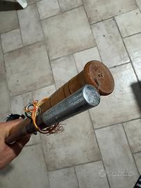 Canna da pesca in legno a 2 pezzi molto rinforzata con mulinello cin un lo di lenza. Articolo vintage difficilmente trovabile