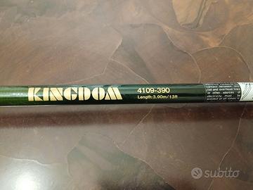 Canna da pesca Kingdom 4109-390 in carbonio di alta qualita, lunghezza 3,9 mt. in 3 pezzi con manico in sughero. Ottima per pesca all'inglese in acqua dolce, trote e carpe, o con galleggiante in genere, ottima anche per mare. Solo ritiro in luogo, a Firenze.