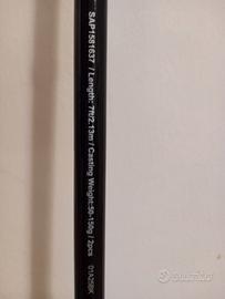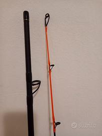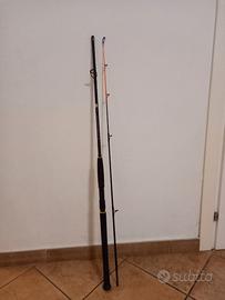 Canna da pesca pensata per i predatori di medie dimensioni del Mediterraneo, sia da riva che dalla barca, usata una volta (senza prendere nulla), ma non è la mia pesca... Caratteristiche tecniche: lunghezza 7 piedi (2.13 m), 2 pezzi, azione 50-150g, anelli a doppio ponte, calcio in gomma maggiorato. Completa della sua fodera originale. Preferisco consegna a mano per l'ingombro, ma posso spedire.