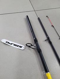 canna da pesca kolpo feed xescpert da 3.60mt in carbonio alto modulo con azione fino a 90 grammi in 3 sezioni e 3 vette intercambiabili con diverse azioni,gli anelli sono in k.sic. ottima per chi pratica la pesca feeder e per chi pesca con il pasturatore molro leggera e reattiva. il mulinello è 7000 con bobina in metallo completo di filo. sono articoli nuovi mai usati. Posso spedire anche in contrassegno a mie spese