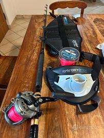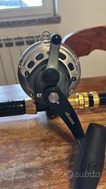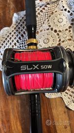 Canna Shimano Tiagra b trolling 50 + mulinello Okuma SLX 50w + filo blue horizon + cintura e renale.