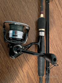 Vendo canna da pesca per spinning marca Milo con due cimini intercambiabili, grammatura supportata 5-25 grammi con il primo cimino e 10-30 g con il secondo cimino.