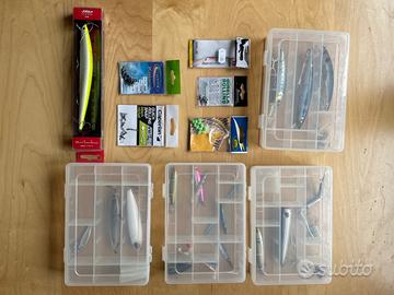Vendo canna da pesca per spinning shimano vengeance 240 in ottime condizioni, usata pochissimo, + mulinello shimano 4000HG in ottime condizioni, niente ruggine come da foto, + borsa caperlan porta esche. Il set esche è composto da 4 scatole modulabili contenenti 8 in plastica, 5 in metallo, 8 in silicone più ami e minuteria varia. È compreso anche il guanto. Disponibile per maggiori foto o video.