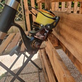 Canna da pesca Shimano sonora 420 e 150 gr praticamente nuova usata un paio di volte, con mulinello della Grauvell modello Divine Vertix con seconda bobina aero