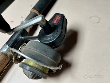 Vendo set da pesca vintage composto da canna con fusto rosso + mulinello Mitchell 320 (marca Mitchell, modello “320” – corpo in metallo, rapporto 3,5:1; reel prodotto in Francia).
