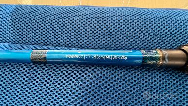 Potenza ML 30-120 gr utilizzata utilizzata solo una volta per un viaggio di pesca tropicale e utilizzata anche spinning in mare sulle mangianze ad alletterati, una volta sola e 2-3 pesci all’attivo.