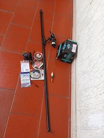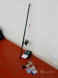 Canna da pesca XXCARBON con kit completo di cui galleggianti girelle bobine ami piombi mulinello posturatori