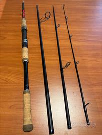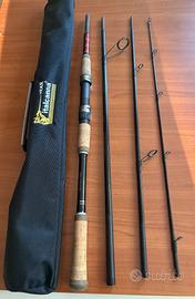 Vendo per inutilizzo canna da spinning Italcanna Kere travel in 4 pezzi. Destinata ad una pesca medio-pesante. Ha un range di lancio dai 30 agli 80gr. Gli innesti sono spigot e gli anelli Fuji Sic originali serie tangle-free. L'ingombro totale con il tubo è 65cm ed entra facilmente in valigia. La canna è praticamente nuova, è stata pagata 380€