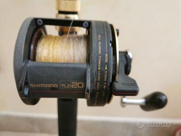 Canna traina Italcanna Baltimora 1, 6/12 Lb, in ottime condizioni con mulinello a bobina rotante Shimano TLD 20 perfettamente funzionante e pronto all'uso, imbobinato con Nylon 20 lb.