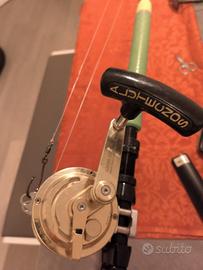 vendo combo drifting tonno traina d'altura,canna super seeker fioretto 10kg manico curvo alps anelli alps acid,mulo alutecnos albacore 20lb con 700mt di treccia 040 nuova ,10mt di finale momoi neo 074 canna pronto pesca,mulo perfettamente funzionante,solo segni da trasporto...