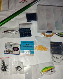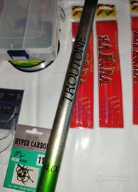 Lotto da pesca, canna Trout One più attrezzatura varia come in foto